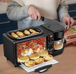 🍳☕ Aparat de mic dejun 3-în-1 electric – cafetieră, prăjitor de pâine și grătare antiaderente
