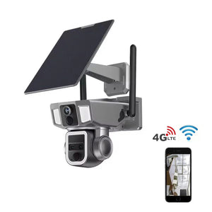 Camera Supraveghere 2 Ecrane, 4 Lentile, 4K Ultra HD 8MP, Zoom Hybrid 10x, Panou Solar, 4G si WiFi