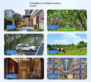 Sursă de Alimentare Solară și cu Baterie: Dispune de o baterie reîncărcabilă de mare capacitate (12000mAh) alimentată de un panou solar de 6W, oferind funcționare continuă chiar și în zilele ploioase.