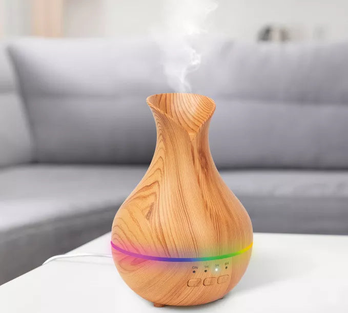 Home Pachet 1 + 1 Difuzor Aromaterapie cu ultrasunete si Umidificator cu led, 130 ml + Cadou 12 Esente Aromaterapie