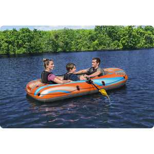 Barca gonflabila Bestway, fabricata din PVC, 3 camere de aer, doi adulti si un copil, 2 vasle din plastic, sarcina maxima 200 kg, pompa cu piston inclusa, 246 x 122 cm