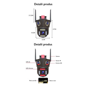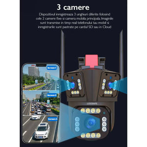 Camera de Supraveghere GRI Tripla WIFI, 12MP, Exterior/Interior, Ultra HD, 10X zoom