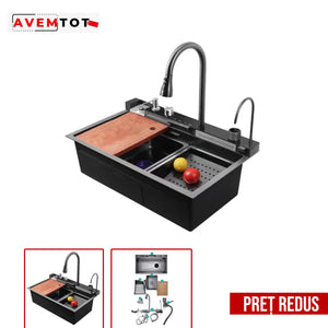 Descoperă combinația perfectă între design modern, funcționalitate și tehnologie eco-friendly. Această chiuvetă multifuncțională este concepută pentru a transforma complet experiența în bucătărie.