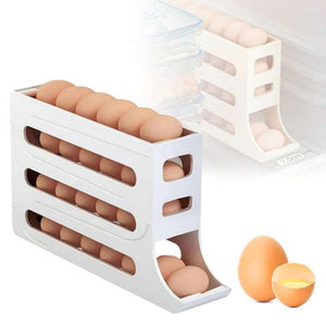 Depozitați și accesați ouăle ușor și în siguranță cu acest suport inovator cu 4 niveluri. Ideal pentru frigider, blat sau cămară, distribuitorul automat permite ouălor să ruleze ușor către partea frontală pentru un acces rapid, fără a fi nevoie de asamblare sau manipulare complicată.