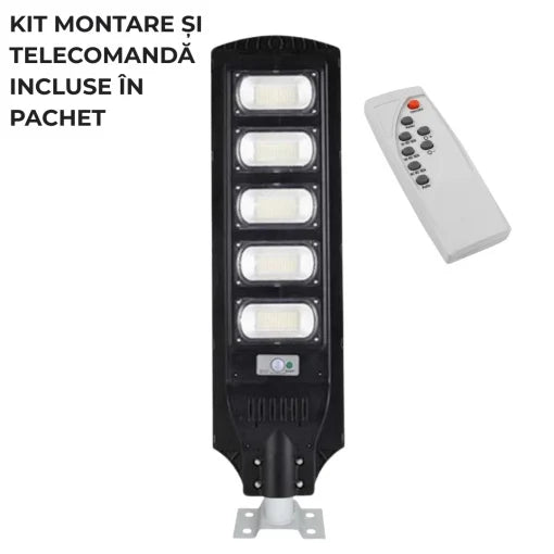 Lampă Stradală Solară 5 Module cu LED 1200W, Senzor de Mișcare și Telecomanda