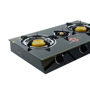 Plită pe gaz cu 3 ochiuri, design din sticlă, compatibilă cu butelie
