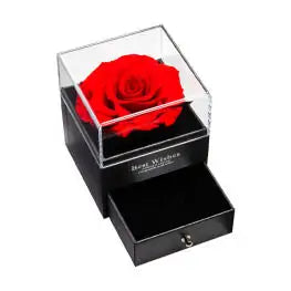 PACHET TRANDAFIR ETERN ROSU + TRANDAFIR IN CUTIE DE BIJUTERII